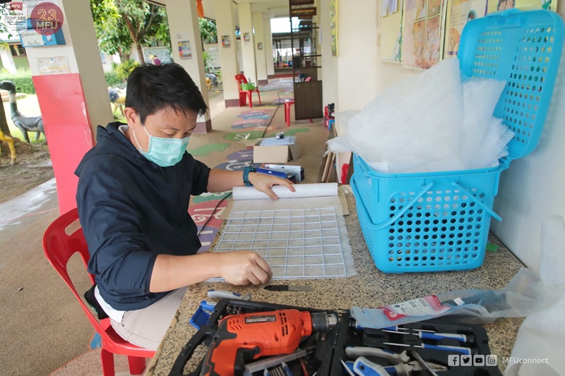 ทั้งนี้ มฟล.นำทีมจากศูนย์เครื่องมือวิทยาศาสตร์และเทคโนโลยี จัดทำห้องปลอดฝุ่นให้แก่กลุ่มเสี่ยงเด็กเล็กอนุบาลเพื่อประยุกต์และถ่ายทอดองค์ความรู้ทำอุปกรณ์ดักจับฝุ่นต้นแบบอย่างง่ายสู่ระดับชุมชน ที่ศูนย์พัฒนาเด็กเล็ก ต.ท่าสุด อ.เมืองเชียงราย จ.เชียงราย โดยได้ทำการส่งมอบอุปกรณ์ฟอกอากาศให้กับศูนย์เด็กเล็ก ต.ท่าสุด เมื่อเดือนพฤษภาคม 2563 ต่อมาในช่วงเดือนมีนาคม –  มิถุนายนนี้ 2564 ได้เข้าทำการปรับให้ห้องปลอดฝุ่นมีประสิทธิภาพมากยิ่งขึ้น ทั้งการการปิดช่องอากาศเพื่อป้องกันฝุ่น ติดตั้งเครื่องเติมอากาศ เครื่องฟอกอากาศ และเครื่องตรวจวัดคุณภาพอากาศ รวมถึงจัดทำโปสเตอร์เพื่อสร้างการเรียนรู้เกี่ยวกับฝุ่น PM 2.5 ทั้งผลกระทบและวิธีปฏิบัติตนเพื่อความปลอดภัย พร้อมทำการส่งมอบให้กับชุมชน