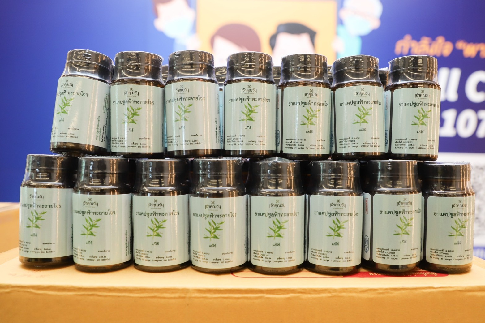 มฟล. มอบแคปซูลฟ้าทะลายโจร "เจ้าคุณวัน" 100,000 แคปซูล ร่วมบรรจุในกล่อง "อว. พารอด" เพื่อช่วยป่วยโควิด-19 สีเขียว