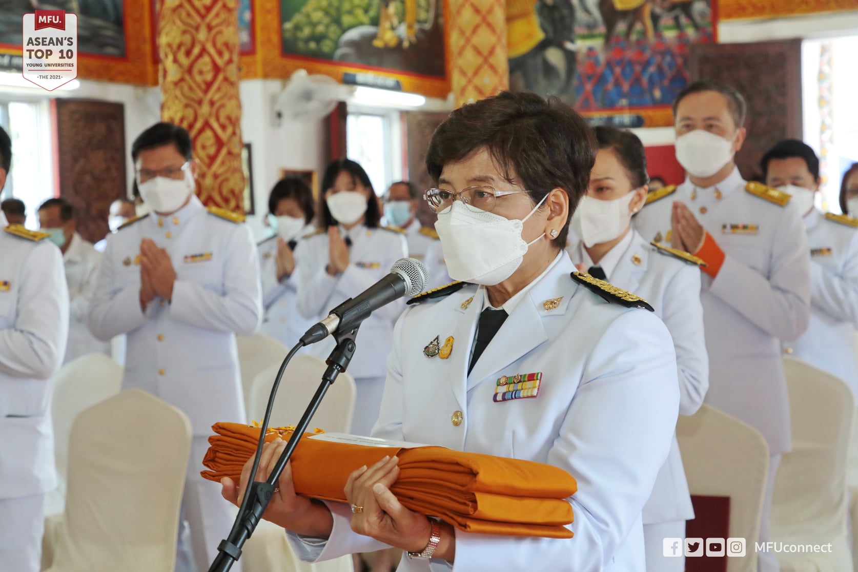เมื่อวันที่ 19 พฤศจิกายน 2564 รศ.ดร.ชยาพร วัฒนศิริ อธิการบดีมหาวิทยาลัยแม่ฟ้าหลวง เป็นประธานในการ ถวายผ้าพระกฐินพระราชทาน ประจำปี 2564 ณ วัดสักกวัน ตำบลริมกก อำเภอเมืองเชียงราย จังหวัดเชียงราย ภายใต้มาตราการป้องกันโรคติดเชื้อไวรัสโคโรนา 2019 (โควิค-19) อย่างเคร่งครัด