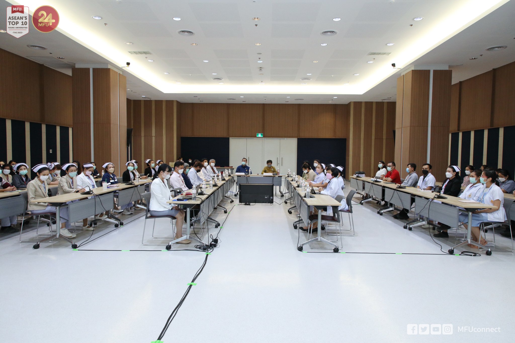 ทั้งนี้ อธิการบดี มฟล. ได้กล่าวขอบคุณบุคลากรทางการแพทย์ทุกคน ที่ปฏิบัติงานอย่างเต็มที่ในช่วงการแพร่กระจายของเชื้อไวรัสโคโรนา 19 (COVID-19) ที่ผ่านมา พันธกิจของมหาวิทยาลัยนอกจากการให้ความรู้ในฝั่งของมหาวิทยาลัยแล้ว การดูแลสุขภาพของนักศึกษาและบุคลากรก็เป็นสิ่งสำคัญไม่ยิ่งหย่อนไปกว่ากัน การขับเคลื่อนของมหาวิทยาลัยและโรงพยาบาลศูนย์การแพทย์ฯ จะก้าวไปพร้อม ๆ กัน โดยยึดหลัก MFU•FIRST ซึ่งเป็นค่านิยม (Core Value) ของมหาวิทยาลัยแม่ฟ้าหลว นอกจากนั้นอธิการบดี มฟล. ยังให้ข้อเสนอแนะการทำงานให้สอดคล้องกับ พ.ร.บ.คุ้มครองข้อมูลส่วนบุคคล พ.ศ.2562 หรือ PDPA อีกด้วย