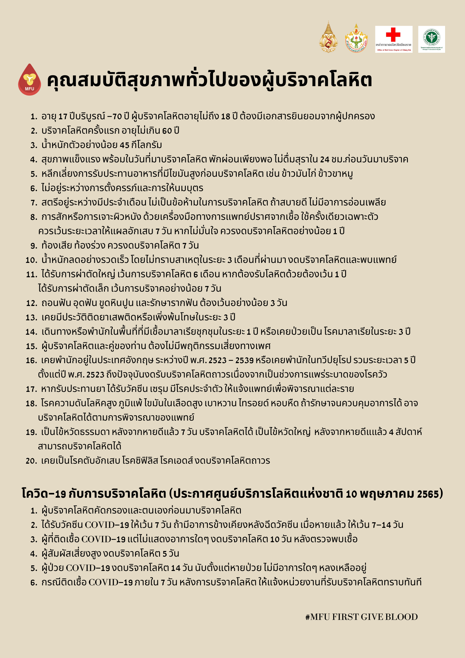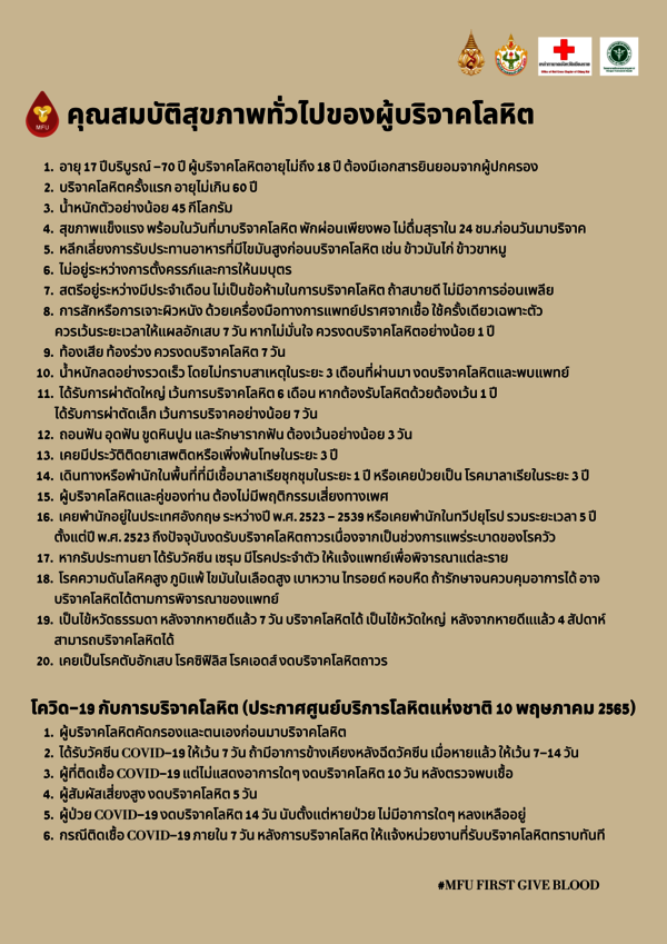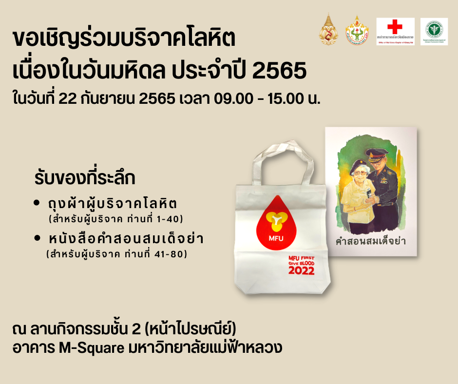 ขอเชิญร่วมบริจาคโลหิตเนื่องในวันมหิดล 2565