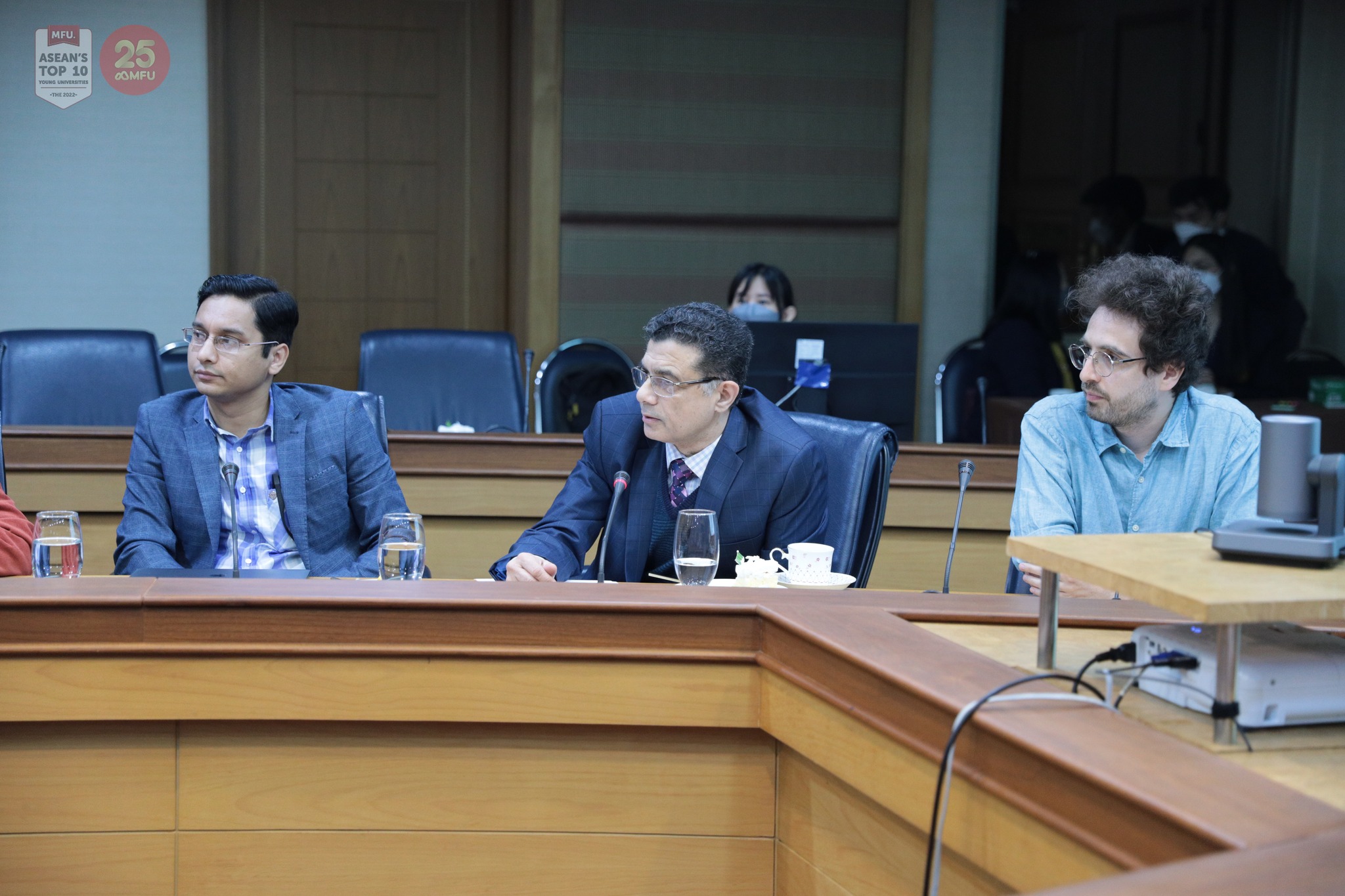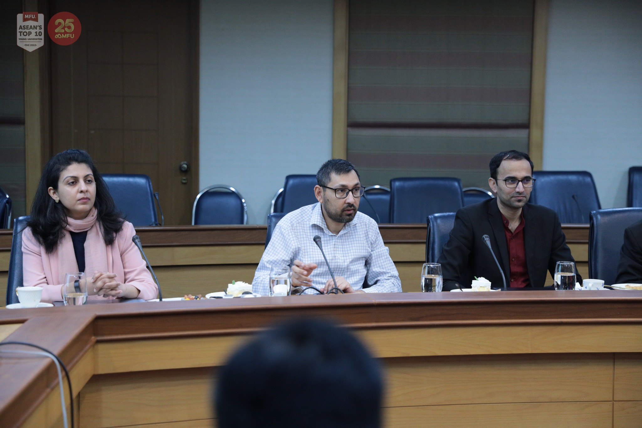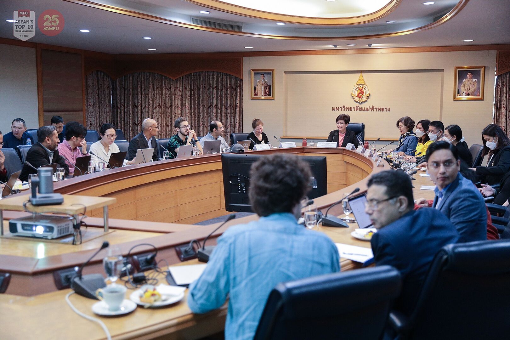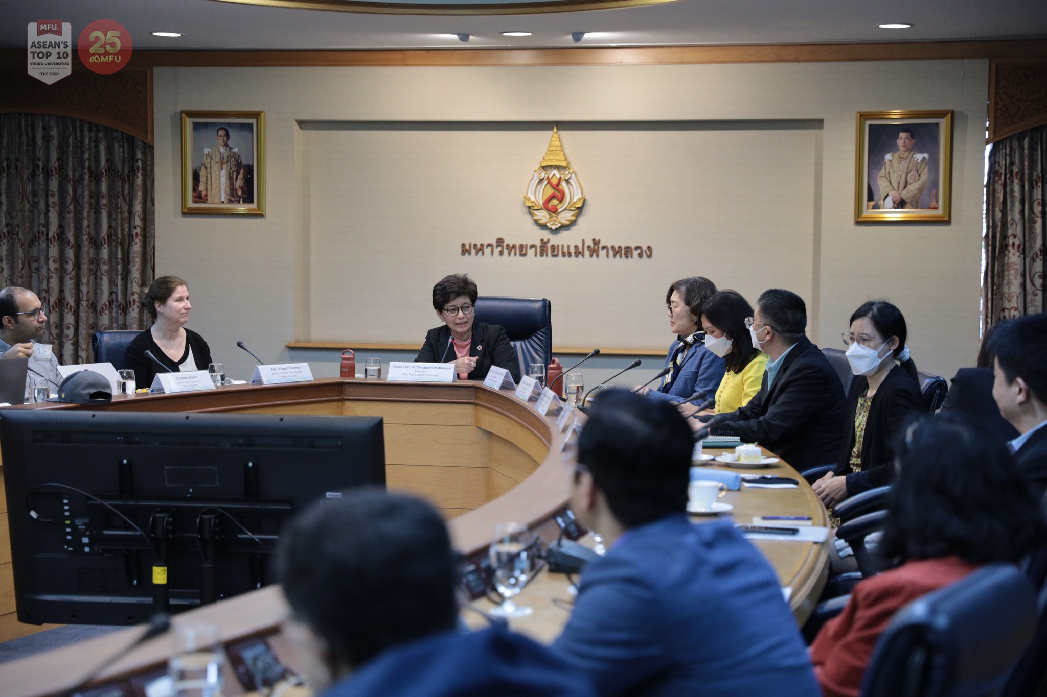 มหาวิทยาลัยแม่ฟ้าหลวง (มฟล.) ให้การต้อนรับผู้เข้าร่วมการประชุมวิชาการนานาชาติใน โครงการ DigiHealth-Asia: Capacity Building for Digital Health Monitoring and Care Systems in Asia ระหว่างวันที่ 16-21 มกราคม 2566 ณ ประเทศไทย นำโดย Professor Ingrid Moerman และ Dr. Adnan Shahid จาก Ghent University เบลเยียม โดยได้รับเกียรติจาก รองศาสตราจารย์ ดร.ชยาพร วัฒนศิริ อธิการบดี มฟล. ให้การต้อนรับ พร้อมด้วย รศ. ดร.นันทนา คชเสนี รองอธิการบดี ผศ. ดร.จุฑามาศ นิวัฒน์ ผู้ช่วยอธิการบดี ผู้ช่วยศาสตราจารย์ ดร.ธีรวิศิฏฐ์ เลาหะเพ็ญแสง คณบดีสำนักวิชาเทคโนโลนีสารสนเทศ ดร. พญ.สุลัคณา น้อยประเสริฐ คณบดีสำนักวิชาการแพทย์บูรณาการ คณาจารย์ ส่วนพัฒนาความสัมพันธ์ระหว่างประเทศ ร่วมให้การต้อนรับ เมื่อวันจันทร์ที่ 16 มกราคม 2566 ณ ห้องประชุมดอยตุง อาคารวันชัย ศิริชนะ มฟล.