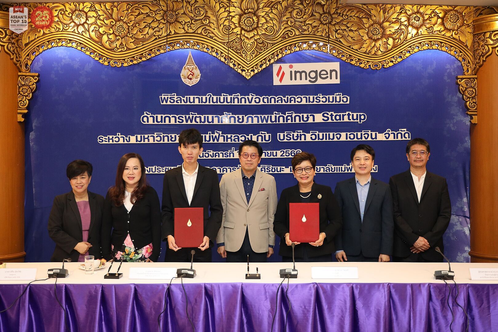 เมื่อวันที่ 18 เมษายน 2566 มหาวิทยาลัยแม่ฟ้าหลวง (มฟล.) ได้ร่วมลงนามในบันทึกข้อตกลง (MOU)  ความร่วมมือในการพัฒนานักศึกษา Startup ระหว่าง รองศาสตราจารย์ ดร.ชยาพร วัฒนศิริ อธิการบดี กับ นายพลวัฒ ดีอันกอง ประธานเจ้าหน้าที่บริหาร/กรรมการบริษัท/ผู้ก่อตั้ง บริษัท อิมเมจ เอนจิน จำกัด ศิษย์เก่าสำนักวิชาเทคโนโลยีสารสนเทศ มฟล. และ นางสาวสิรินฉัตรวิชัย กรรมการบริษัทฯ โดยมี ดร.ชลิดา ธนินกุลภรณ์ หัวหน้าส่วนจัดการทรัพย์สินทางปัญญาและนวัตกรรม สถาบันวิจัยและนวัตกรรม มฟล. และ นางสาวฟากผัน สีหลอด ผู้จัดการทั่วไป บริษัท อิมเมจ เอนจิน จำกัด ร่วมเป็นสักขีพยาน ณ ห้องประชุมเชียงแสน อาคารวันชัย ศิริชนะ