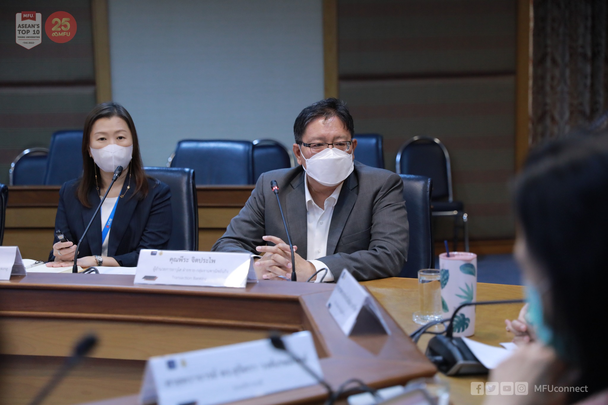 เมื่อวันที่ 27 มิถุนายน 2566 ณ ห้องประชุมดอยตุง อาคารวันชัย ศิริชนะ ผู้ช่วยศาสตราจารย์ ดร.มัชฌิมา นราดิศร อธิการบดีมหาวิทยาลัยแม่ฟ้าหลวง พร้อมด้วย ศาสตราจารย์ ดร.สุจิตรา วงศ์เกษมจิตต์ รองอธิการบดี อาจารย์วิทยาศักดิ์ รุจิวรกุล รองอธิการบดี คุณกัลยา สุวรรณภักดี ผู้ช่วยอธิการบดี คุณกานต์กุญช์ บำรุงชาติ หัวหน้าส่วนบริหารงานวิจัย และคณะผู้บริหาร เข้าร่วมประชุมหารือ "การนำเสนอระบบเบิกจ่ายเงินโครงการวิจัยจากธนาคารยูโอบี จำกัด (มหาชน)" จากผู้แทนธนาคารยูโอบี คุณพีระ จิตประไพ ผู้อำนวยการอาวุโส ฝ่ายขาย-กลุ่มงานพาณิชย์ธนกิจ Transaction Banking คุณขวัญชีวี มณีทอน ผู้อำนวยการ Commercial Cash Sales Transaction Banking และคณะ