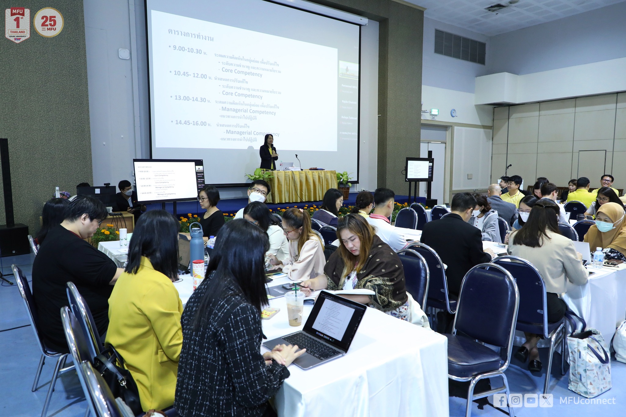 เมื่อวันที่ 27 พฤษภาคม 2567 ส่วนการเจ้าหน้าที่จัดการอบรมเชิงปฏิบัติการ “การจัดทำสมรรถนะบุคลากรมหาวิทยาลัยแม่ฟ้าหลวง” ครั้งที่ 2 ต่อเนื่องจากวันที่ 20 พฤษภาคม 2567 ณ ห้อง 302 อาคารพลตำรวจเอกเภา สารสิน (C5) โดยมีผู้ช่วยศาสตราจารย์ ดร.ทันตแพทย์หญิง รัชฎา ฉายจิต รองคณบดีฝ่ายยุทธศาสตร์ คณะทันตแพทยศาสตร์ มหาวิทยาลัยขอนแก่น เป็นวิทยากร ทั้งนี้ ผู้ช่วยศาสตราจารย์ ดร.มัชฌิมา นราดิศร อธิการบดีมหาวิทยาลัยแม่ฟ้าหลวง พร้อมด้วยรองอธิการบดี ผู้ช่วยอธิการบดี คณบดี หัวหน้าหน่วยงาน และบุคลากรระดับหัวหน้าฝ่ายเข้าร่วมอย่างพร้อมเพรียง