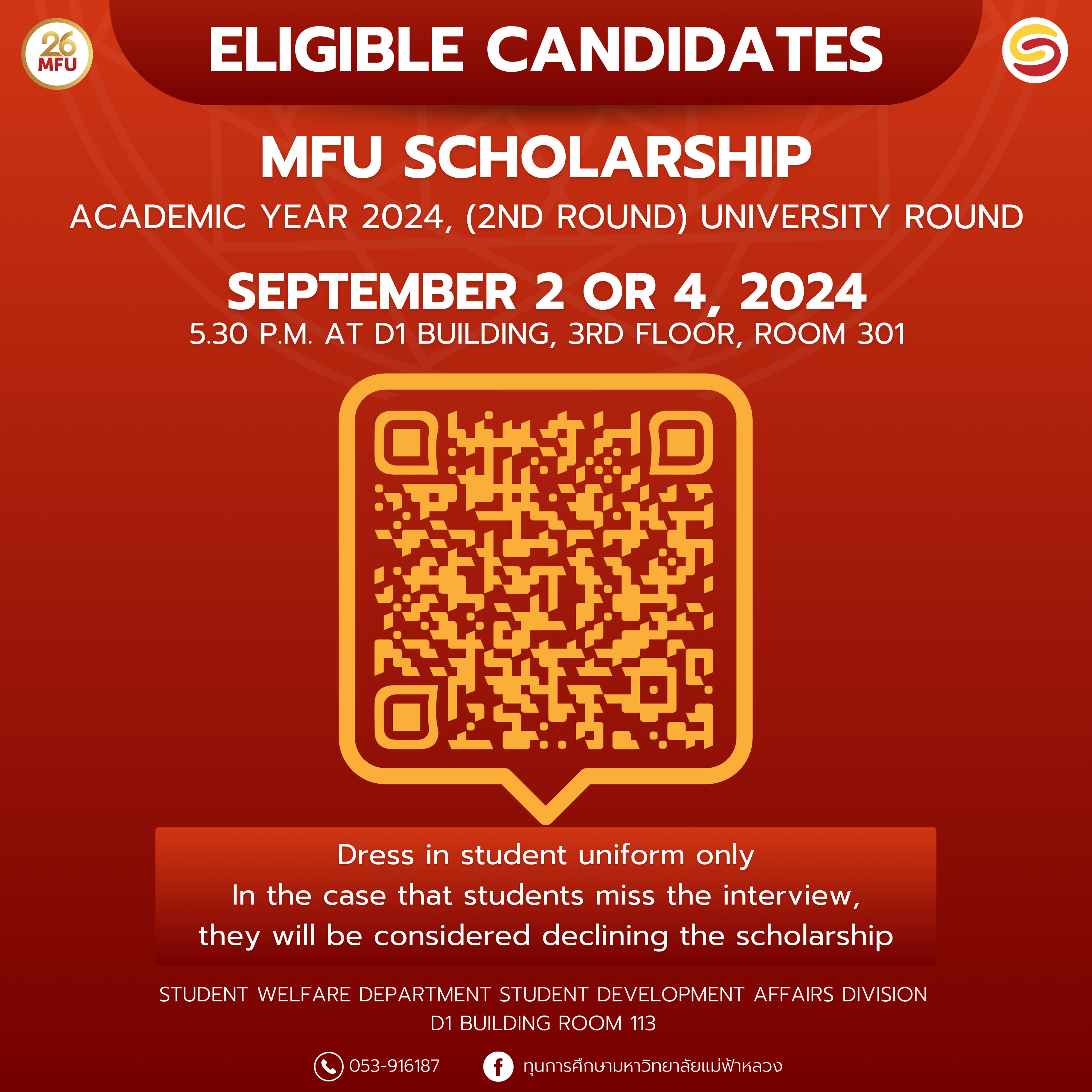 Eligible Candidates for MFU Scholarship of Academic Year 2024, (2nd round) University Round