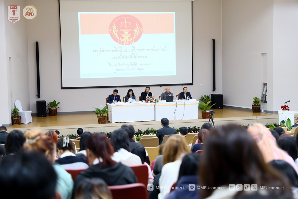 เมื่อวันที่ 28 มกราคม 2568 มหาวิทยาลัยแม่ฟ้าหลวง โดยสำนักวิชานิติศาสตร์ ร่วมกับ สำนักงานศาลรัฐธรรมนูญ จัดโครงการเสริมสร้างความรู้เกี่ยวกับการปกครองในระบอบประชาธิปไตยตามหลักนิติธรรม ณ ห้องประดู่แดง 2 อาคารพลเอกสำเภา ชูศรี (E4) โดยมี รศ. ดร.ดรุณี วัฒนศิริเวช รองอธิการบดี ผู้ช่วยศาสตราจารย์ สุชิน กฤตลักษณ์วงศ์ คณบดีสำนักวิชานิติศาสตร์ มหาวิทยาลัยแม่ฟ้าหลวง ให้การต้อนรับ