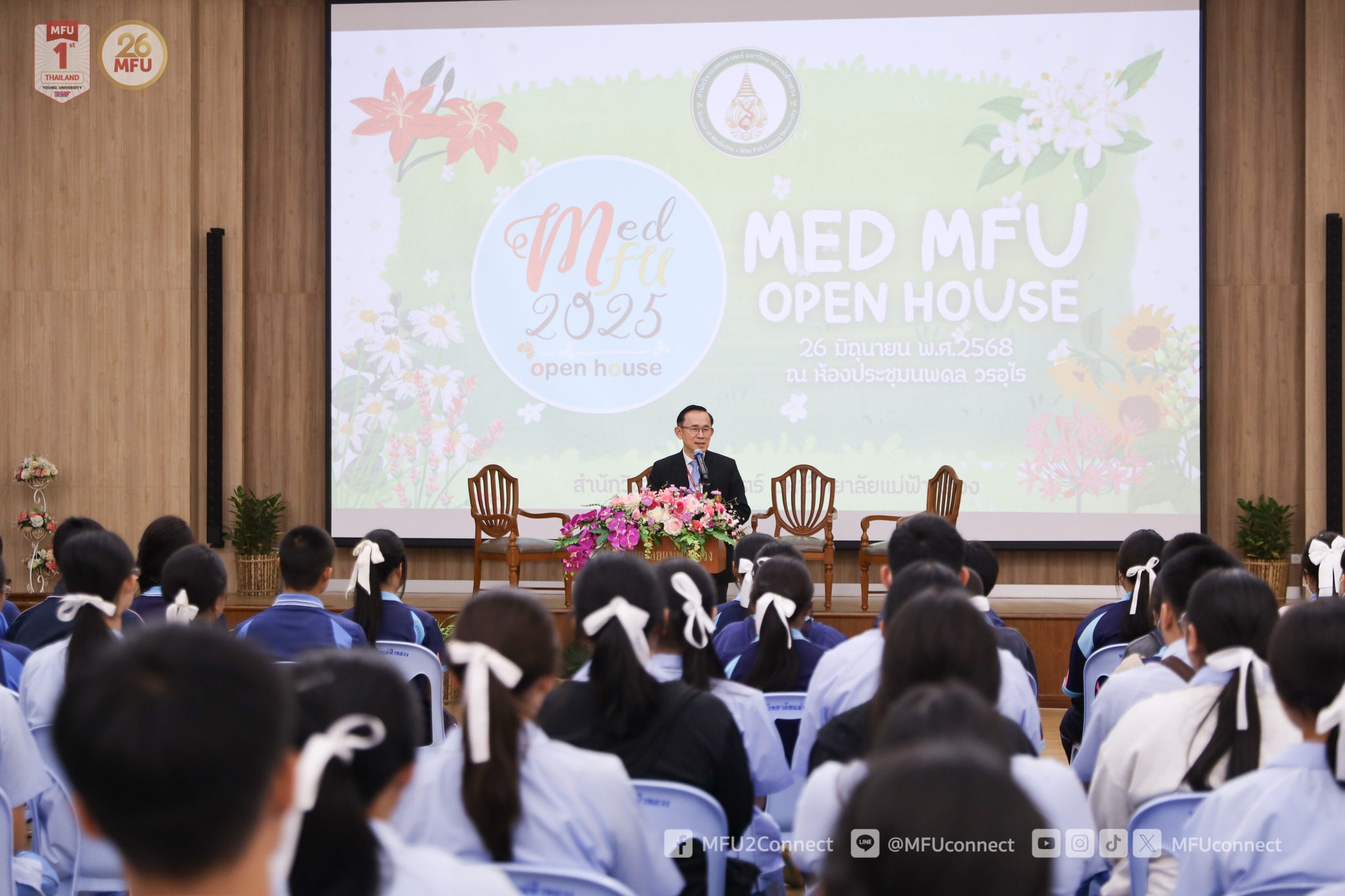 เมื่อวันที่ 26 มิถุนายน 2568 สำนักวิชาแพทยศาสตร์ มหาวิทยาลัยแม่ฟ้าหลวง (มฟล.) ได้จัดกิจกรรม เปิดรั้วโรงเรียนแพทย์แม่ฟ้าหลวง 2568 (Med MFU Open House 2025) ณ อาคารสำนักวิชาแพทยศาสตร์ เพื่อสร้างแรงบันดาลใจให้นักเรียนระดับมัธยมศึกษาตอนปลาย จากโรงเรียนเทศบาล 6 นครเชียงราย และโรงเรียนองค์การบริหารส่วนจังหวัดเชียงราย จำนวน 165 คน ได้เห็นถึงบทบาท หน้าที่ และคุณค่าของวิชาชีพแพทย์อย่างใกล้ชิด