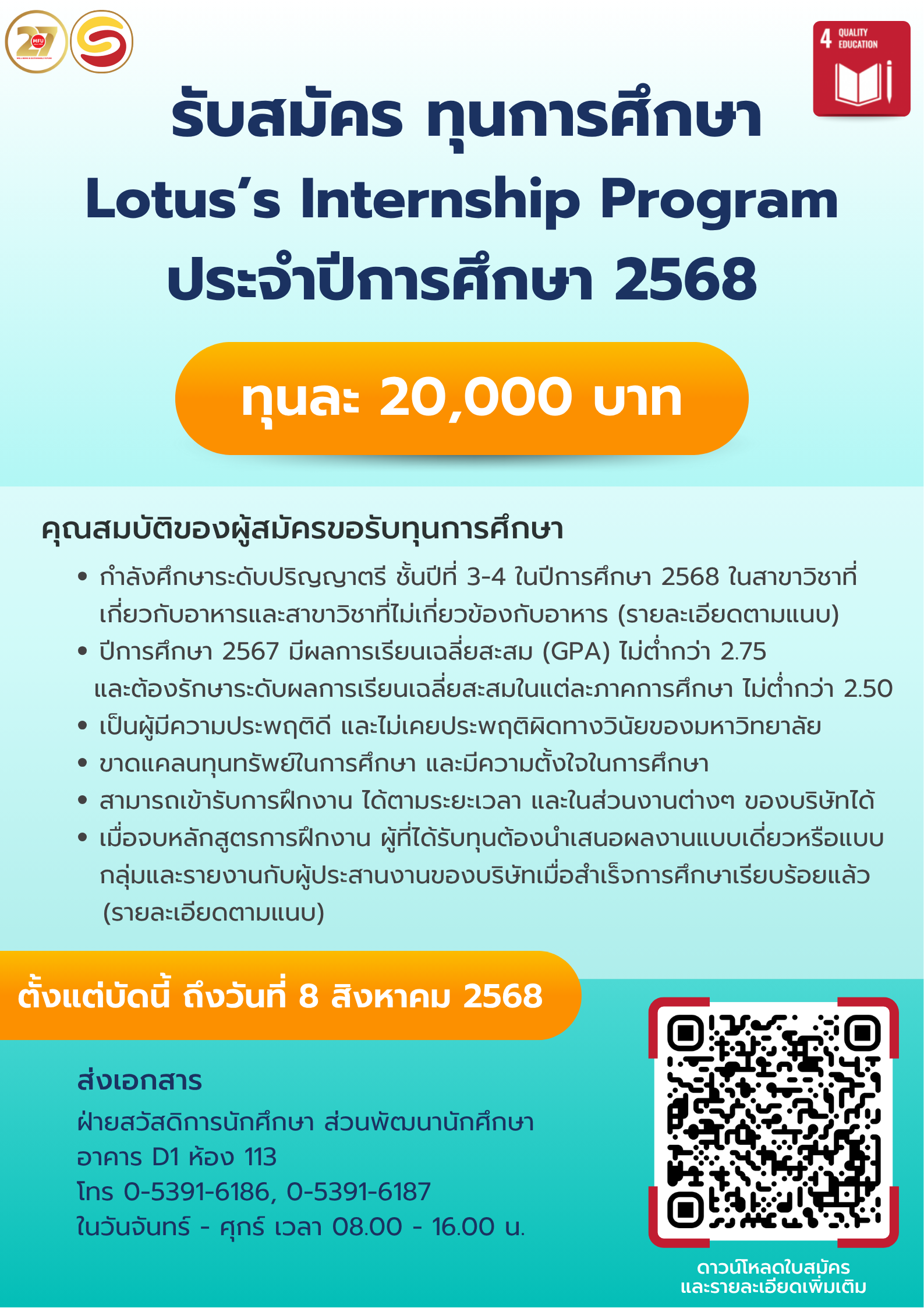 ทุนการศึกษา Lotus’s Internship Prorogram ประจำปีการศึกษา 2568
