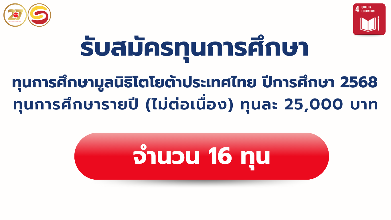 จำนวน 16 ทุน ๆ ละ 25,000 บาท ทุนการศึกษารายปี (ไม่ต่อเนื่อง)