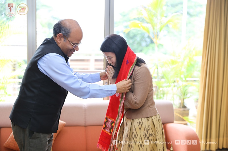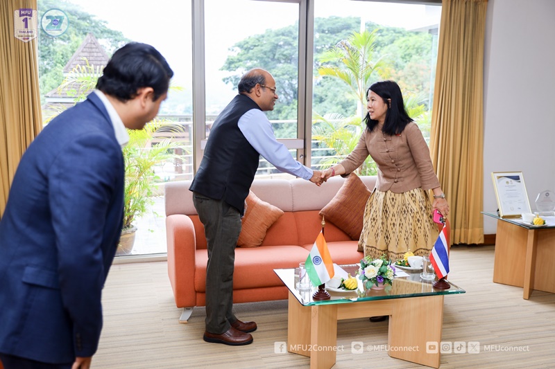 มหาวิทยาลัยแม่ฟ้าหลวง ค้อนรับคณะผู้แทนสถานกงสุลใหญ่อินเดียประจำเชียงใหม่ นำโดยนายประณพ คเณศ กงสุลใหญ่สาธารณรัฐอินเดีย เข้าเยี่ยมคารวะอย่างเป็นทางการ เมื่อวันพุธที่ 16 กรกฎาคม 2568 เวลา 11.00-12.00 น. ณ ห้องรับรอง อาคารวันชัย ศิริชนะ