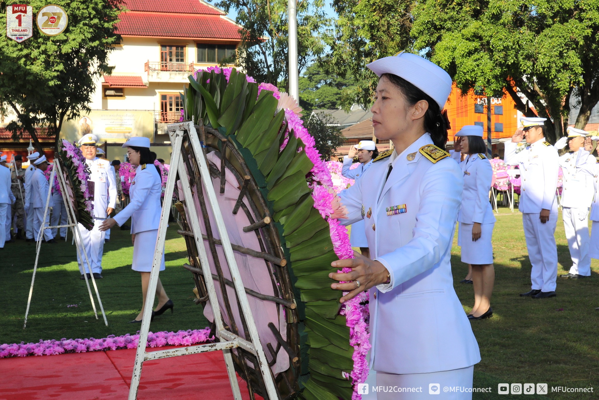 ในการนี้ ผู้ช่วยศาสตราจารย์ ดร.ณัฐพรพรรณ อุตมา รองอธิการบดี ผู้แทนอธิการบดีมหาวิทยาลัยแม่ฟ้าหลวง พร้อมด้วย นางสาวพัชรภร ปอนสืบ หัวหน้าฝ่ายงบประมาณ รักษาการแทนหัวหน้าส่วนนโยบายและแผน และบุคลากรจากมหาวิทยาลัยแม่ฟ้าหลวง เข้าร่วมในพิธีถวายพวงมาลา ถวายราชสักการะต่อเบื้องหน้าพระบรมราชานุสาวรีย์ เพื่อแสดงออกถึงความจงรักภักดีและสำนึกในพระมหากรุณาธิคุณอันหาที่สุดมิได้