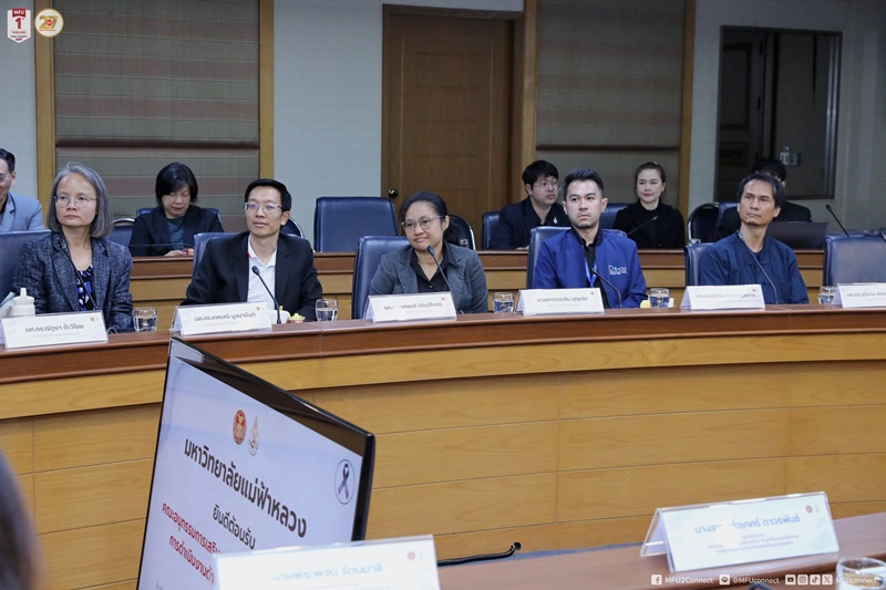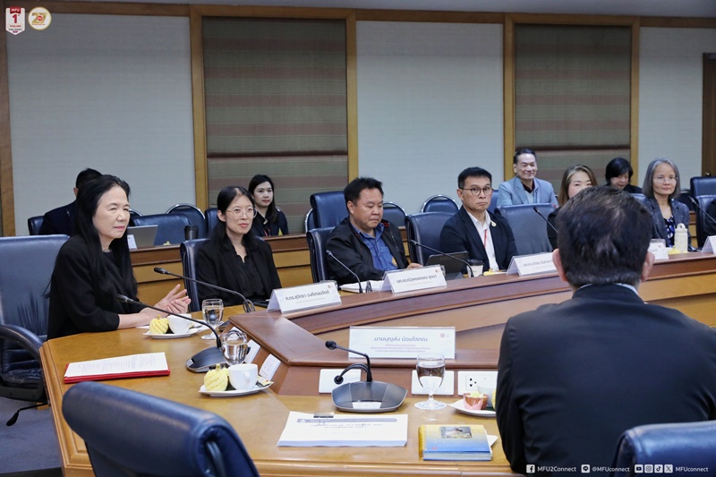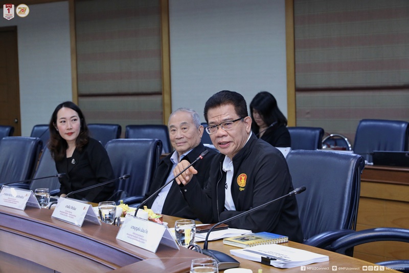 Discussion during the meeting highlighted MFU’s research contributions to addressing pressing environmental issues in northern Thailand, with a particular emphasis on rare earth mineral concerns, pollution in the Kok River, and air pollution caused by dust and haze—issues that have significant implications for public health, ecosystems, and quality of life of local communities.
