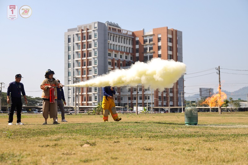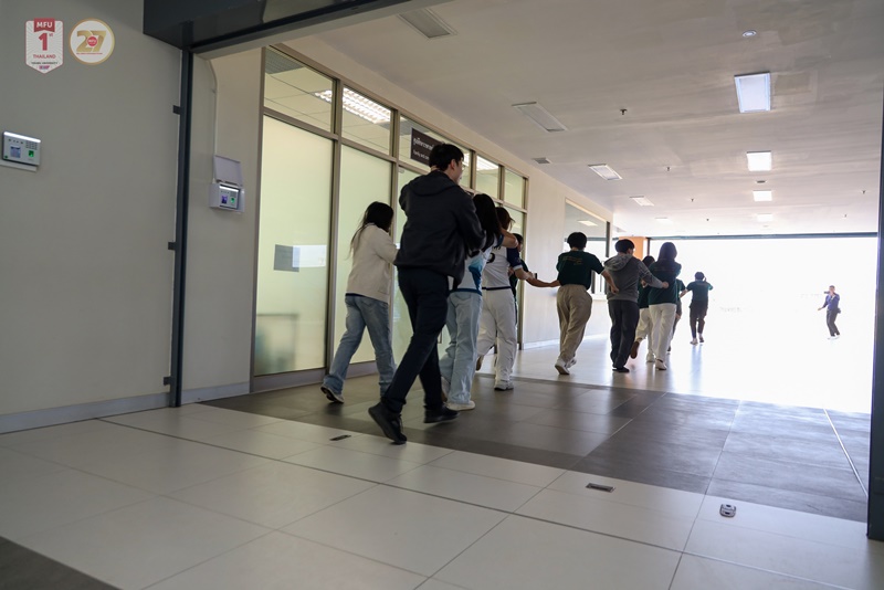 Key activities included expert-led sessions on building warning and alert systems, delivered by Mr. Panpong Kongtui, Head of the Energy Development and Conservation Division, Physical Plant Department. Further sessions addressing fire hazards, emergency response and earthquake safety in high-rise buildings were conducted by officers from the Disaster Prevention and Mitigation Center, Region 15, Chiang Rai.
