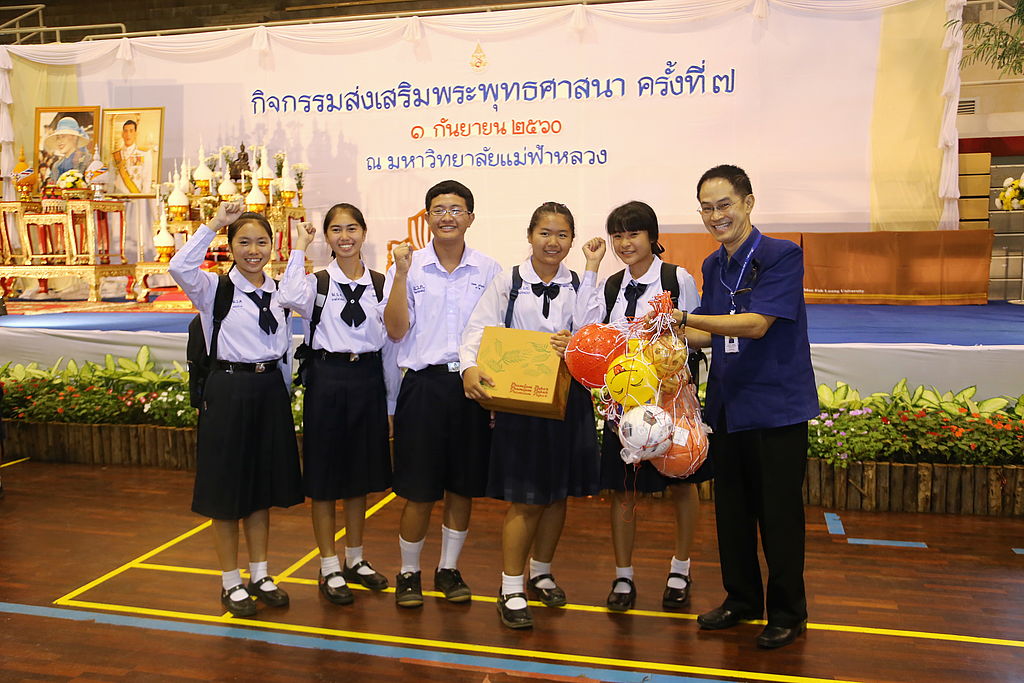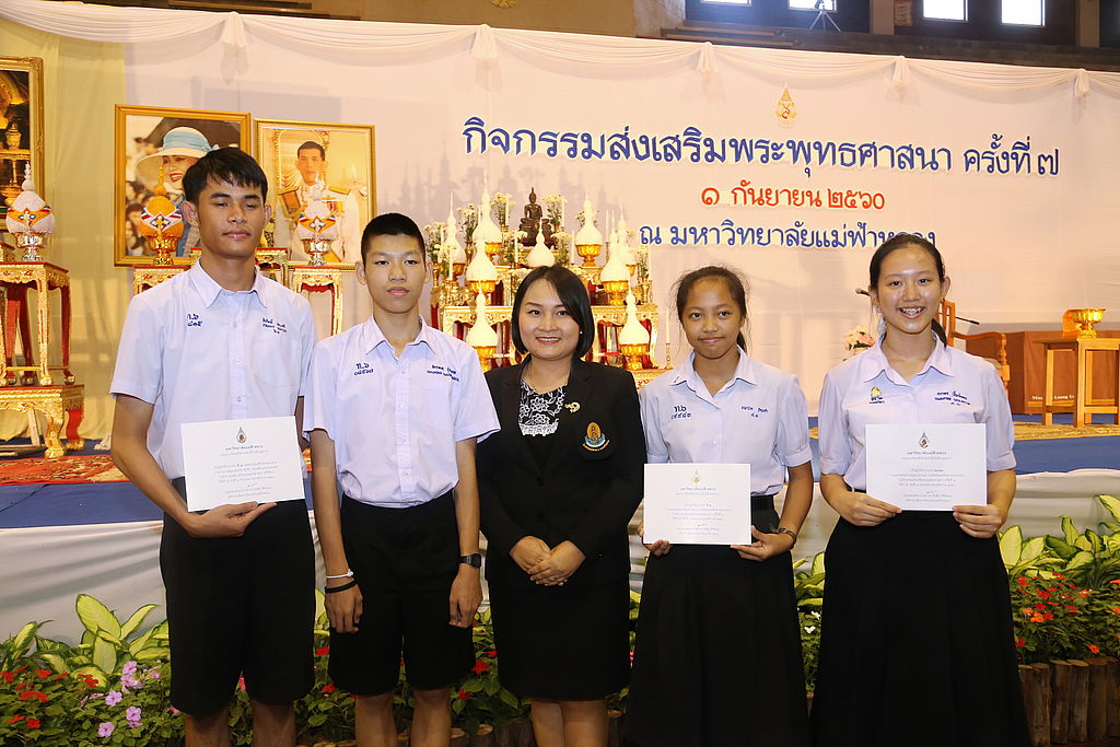 มหาวิทยาลัยแม่ฟ้าหลวง (มฟล.) จัด กิจกรรมส่งเสริมพระพุทธศาสนา ครั้งที่ 7 เมื่อวันศุกร์ที่ 1 กันยายน 2560 ณ อาคารเฉลิมพระเกียรติ 72 พรรษา บรมราชินีนาถ โดยมีวัตถุประสงค์เพื่อสืบสานแนวทางอันดีงามของพระพุทธศาสนา และน้อมถวายเป็นพระราชกุศลแด่สมเด็จพระนางเจ้าสิริกิติ์ พระบรมราชินีนาถในพระบาทสมเด็จพระปรมินทรมหาภูมิพลอดุลยเดช ซึ่งมีสถานศึกษาในเขตพื้นที่การศึกษาภาคเหนือและทั่วประเทศ ส่งนักเรียนนักศึกษาเข้าร่วมกิจกรรมจำนวนมาก ทั้งในระดับประถมศึกษา มัธยมศึกษาตอนต้น มัธยมศึกษาตอนปลาย และระดับอุดมศึกษา โดยมีกิจกรรหลากหลายภายในงาน ไม่ว่าจะเป็น นิทรรศการส่งเสริมพระพุทธศาสนาจากหน่วยงานต่างๆ นิทรรศการพระราชวงศ์ไทยกับพระพุทธศาสนา นิทรรศการเทิดพระเกียรติพระบาทสมเด็จพระเจ้าอยู่หัวรัชกาลที่ 9 “ร้อยเรียงภาพ เล่าเรื่องพ่อ” การแข่งขันตอบคำถามธรรมะ การประกวดสุนทรพจน์ หัวข้อ “พอเพียง..ตามรอยพ่อ” และการตอบคำถามแฟนพันธุ์แท้พุทธประวัติ