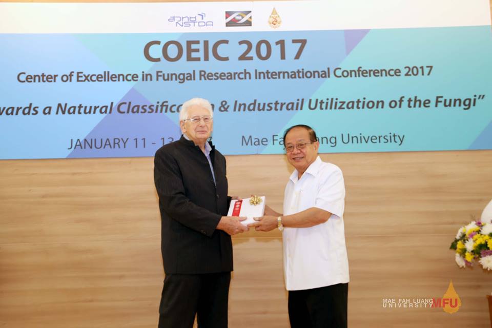 เมื่อวันที่ 11 มกราคม 2560 รศ.ดร.วันชัย ศิริชนะ อธิการบดี มหาวิทยาลัยแม่ฟ้าหลวง (มฟล.) เป็นประธานกล่าวเปิดการประชุมวิชาการนานาชาติ ภายใต้หัวข้อ “Towards a Natural Classification and Industrial Utilization of the Fungi” ณ อาคาร M Square มหาวิทยาลัยแม่ฟ้าหลวง จัดการประชุมโดย ศูนย์ความเป็นเลิศทางด้านการวิจัยเชื้อรา มหาวิทยาลัยแม่ฟ้าหลวง โดย รศ.ดร.วันชัย ศิริชนะ ได้มอบของที่ระลึกให้แก่ Prof. E.B. Gareth Jones ผู้ทรงคุณวุฒิทางด้านราวิทยาระดับโลยที่มาร่วมในการประชุมวิชาการครั้งนี้