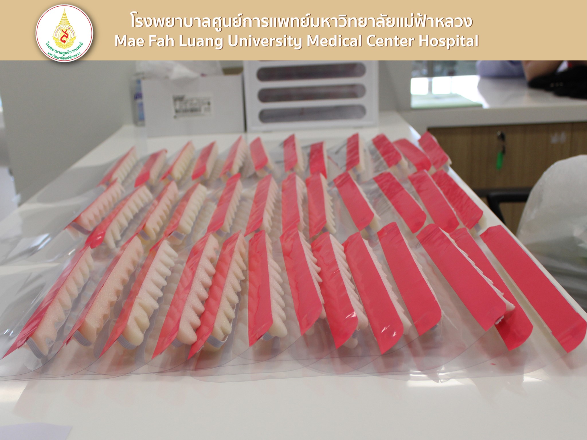 โรงพยาบาลศูนย์การแพทย์มหาวิทยาลัยแม่ฟ้าหลวง ระดมบุคลากรทางการแพทย์ผลิตหน้ากาก Face Shield (DIY) เพื่อใช้ป้องกัน น้ำมูก น้ำลาย เสมหะ และเลือด ที่จะกระเด็นเข้าใบหน้า เพื่อลดโอกาสในการติดเชื้อทั้งเจ้าหน้าที่และผู้รับบริการ โดยหน้ากากกันกระเด็นสามารถทำเองได้จากอุปกรณ์ที่หาได้ง่าย ได้แก่ แผ่นใส เชือก กาว 2 หน้า เครื่องเย็บกระดาษ และแผ่นฟองน้ำ