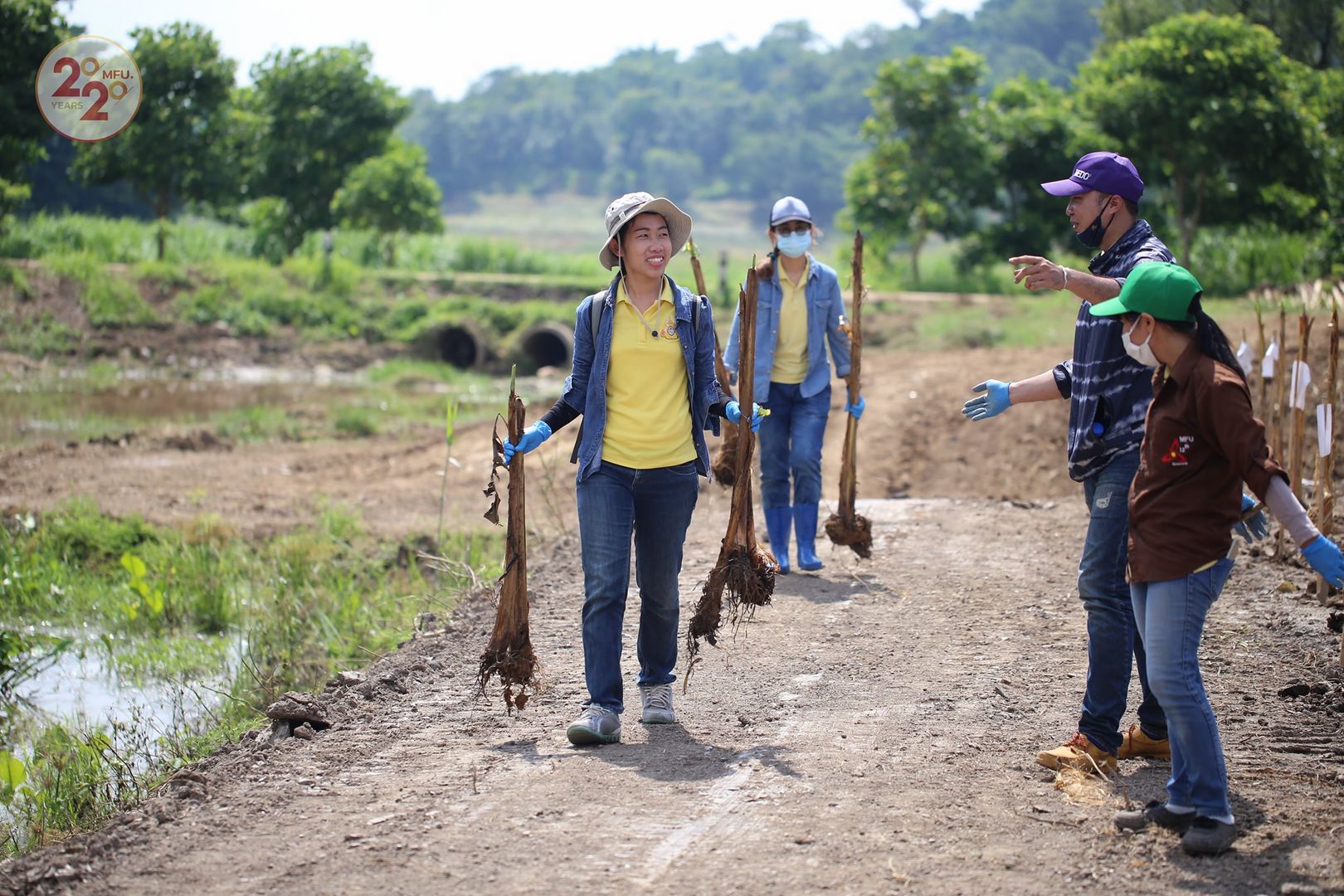 โครงการสวนพฤกษศาสตร์ มหาวิทยาลัยแม่ฟ้าหลวง (มฟล.) นำโดย ดร.จันทรารักษ์ โตวรานนท์ หัวหน้าโครงการฯ จัดกิจกรรม ‘รักษ์น้ำ รักษ์ป่า รักษ์ดิน’ เมื่อวันศุกร์ที่ 24 กรกฎาคม 2563 เวลา 09.00-12.00 น. ที่บริเวณอ่างเก็บน้ำ มหาวิทยาลัยแม่ฟ้าหลวง เนื่องในวันเฉลิมพระชนมพรรษาพระบาทสมเด็จพระวชิรเกล้าเจ้าอยู่หัว ประจำปี 2563 โดยผู้เข้าร่วมกิจกรรมทั้งผู้บริหาร คณาจารย์ และพนักงาน โดยเฉพาะนักศึกษา ที่โครงการฯ ได้ประกาศขออาสาสมัคร ซึ่งมีนักศึกษาสมัครเข้ามาช่วยในโครงการจากทุกสำนักวิชาทั้งนักศึกษาไทย และนักศึกษาต่างชาติ ร่วมกันลำเลียงหน่อกล้วยเพื่อนำไปปลูกบริเวณอ่างเก็บน้ำ