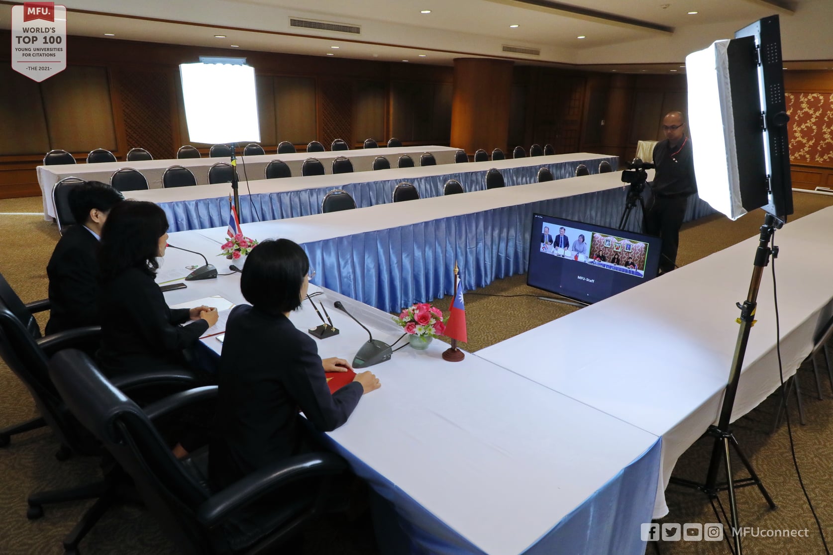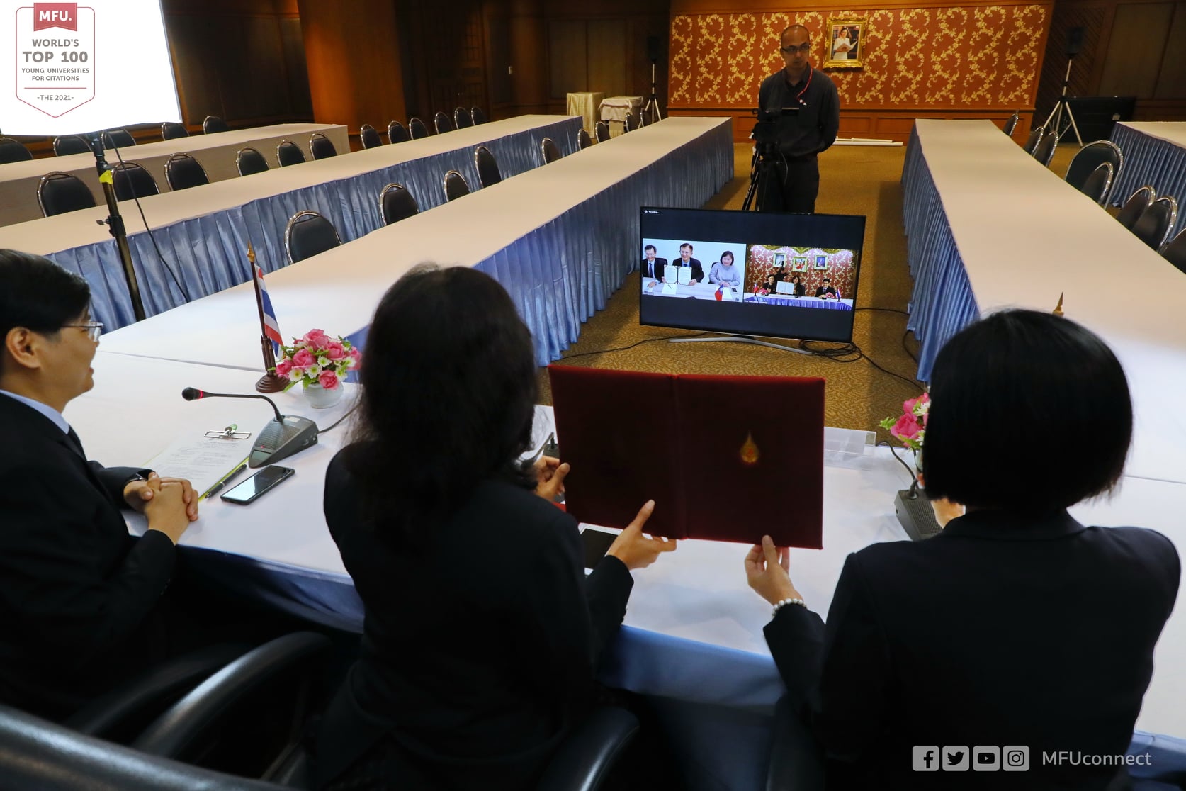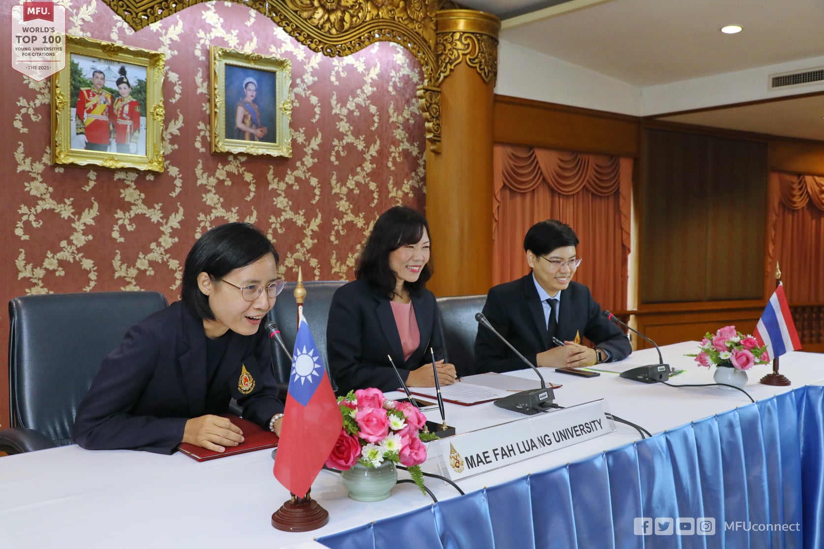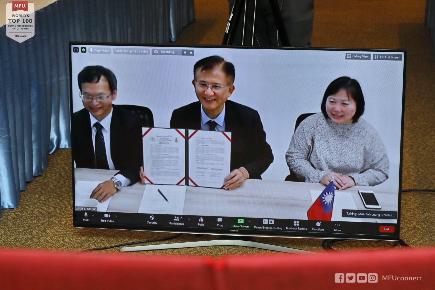 เมื่อวันที่ 17 พฤศจิกายน 2563 ผศ.ดร.จุฑามาศ นิวัฒน์ ผู้ช่วยอธิการบดีมหาวิทยาลัยแม่ฟ้าหลวง (มฟล.) พร้อมด้วย ดร.พญ.สุลัคณา น้อยประเสริฐ คณบดีสำนักวิชาแพทย์บูรณาการ เข้าร่วมพิธีลงนามความร่วมมือผ่านระบบออนไลน์ ระหว่างสำนักวิชาแพทย์บูรณาการ มหาวิทยาลัยแม่ฟ้าหลวง กับ College of Chinese Medicine, China Medical University, Taiwan เพื่อการพัฒนาหลักสูตรออนไลน์ (MOOC) ร่วมกันในสาขาวิชา Aromatherapy Massage และกิจกรรมความร่วมมือทางวิชาการอื่นๆ ต่อไป โดยจะมีการเดินทางเยือนระหว่างกันเพื่อหารือการทำความร่วมมือด้านต่างๆ หลักจากสถานการณ์ COVID 19 กลับสู่สภาวะปกติ