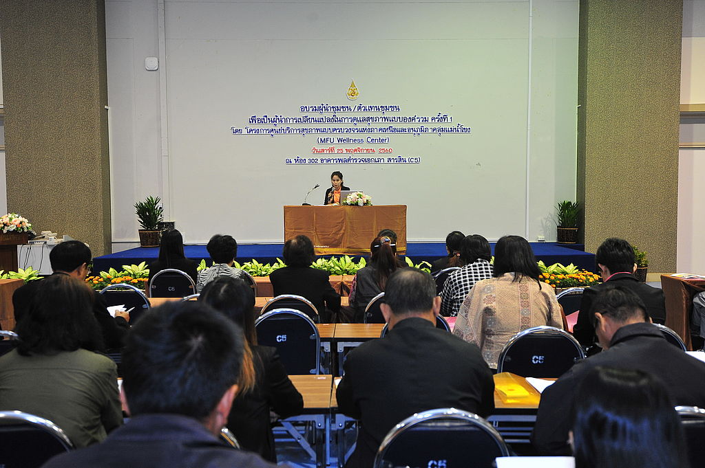 เมื่อเร็ว ๆ  นี้ โครงการศูนย์บริการสุขภาพแบบครบวงจรแห่งภาคเหนือและอนุภูมิภาคลุ่มแม่น้ำโขง มหาวิทยาลัยแม่ฟ้าหลวง (MFU Wellness Center) จัดอบรม “ผู้นำชุมชน/ตัวแทนชุมชนเพื่อเป็นผู้นำการเปลี่ยนแปลงในการดูแลสุขภาพแบบองค์รวม” ครั้งที่ 1 ณ ห้อง 302 อาคารพลตำรวจเอกเภา สารสิน มฟล. โดยมีผู้นำชุมชน/ตัวแทนชุมชนเข้าร่วมจำนวนมาก
